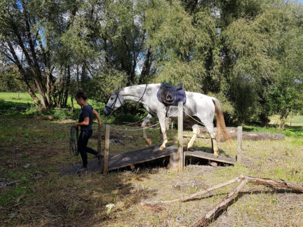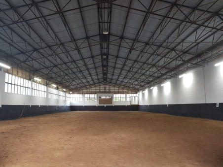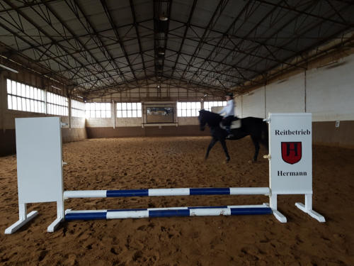 Reitanlage große Reithalle, Dressur- und SpringplatzRoundpen Aktivtrail mit Wassergrabenlauf, Wippe, Brücke, Naturkletterhügel, Natursprünge, versch. Untergrundlaufflächen, insg. 4 Bahnen zum Training